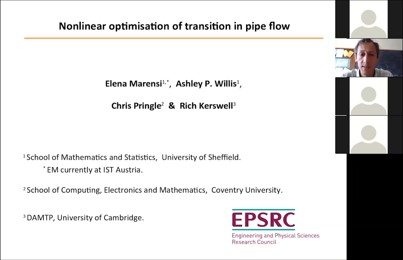 北京时间2021年7月6日16:00,Ashley P. Willis博士应邀参加2021年bat365在线中国官网登录入口新能源系列国际暑期学校暨第二届流体力学大讲堂,并做了关于“管道流动转捩的非线性最优化问题”的报告。
